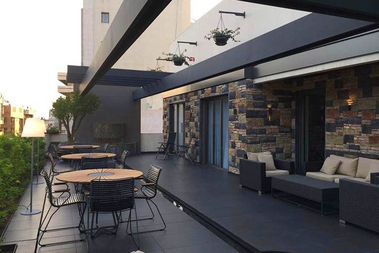 In the heart of Beirut, a rooftop sanctuary blends rustic charm with modern style. Traditional stone cladding on the exterior belies the modern concept within, where vibrant lighting and sleek design elements create an inviting ambiance. This fusion of old and new captures the essence of Beirut's dynamic cultural landscape.