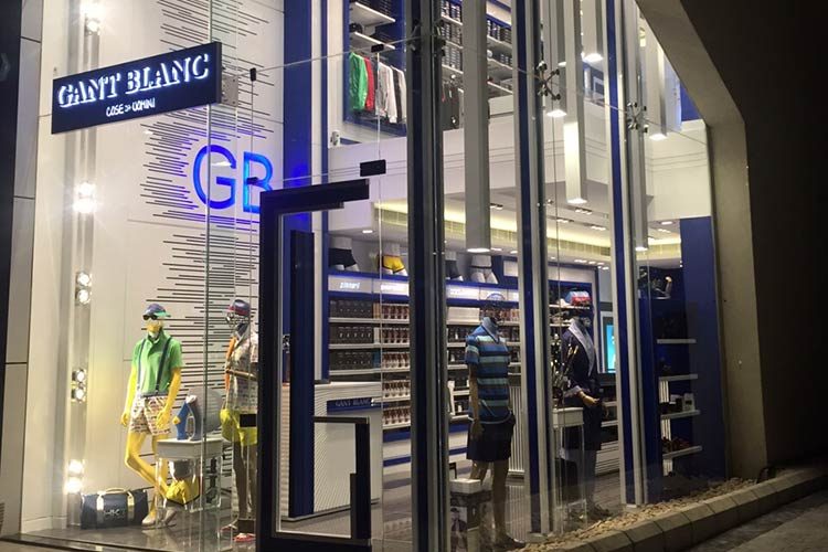 This men's shop in Lebanon , showcasing Italian and international brands, was carefully designed to reflect the owner's style. Overcoming challenges posed by existing columns at the facade ,random short and long columns were added, designed with lighting fixtures to create a dynamic and visually striking concept for the facade.