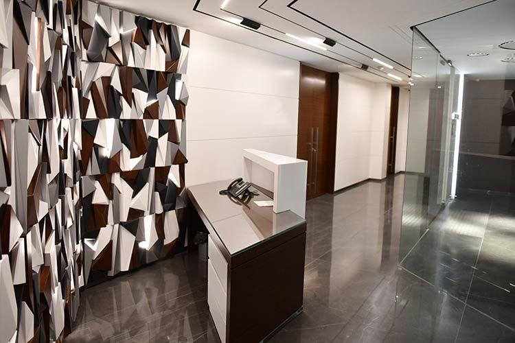 The offices, spanning the 11th and 12th floors at UNESCO Beirut offer stunning views and serve as the central hub for a family-run business. Carefully designed reception areas warmly welcome guests, featuring captivating design elements and thoughtfully placed lighting.
